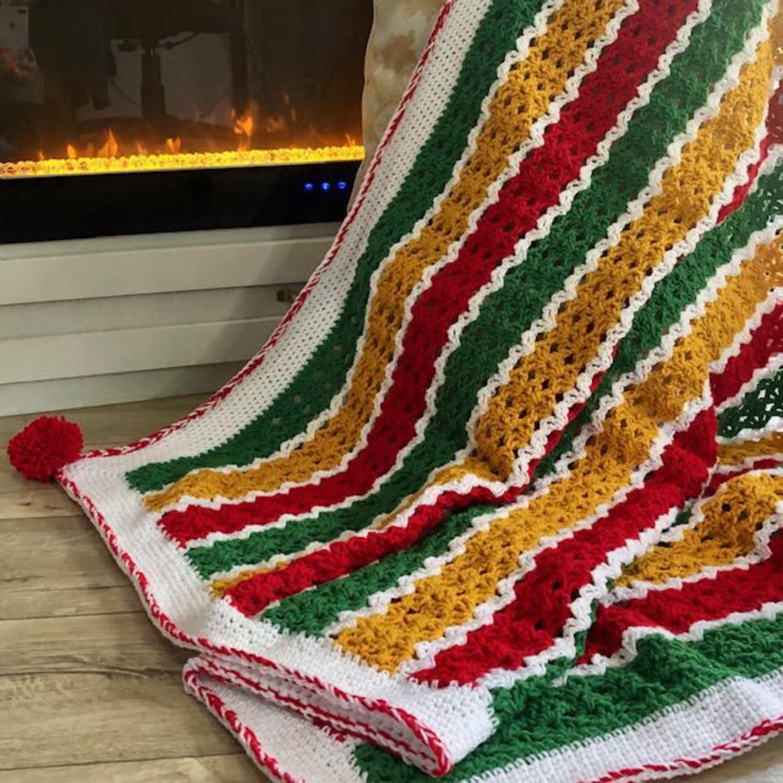 An allover open-shell pattern creates a lacy background for classic Christmas colors to shine! This fun and EASY afghan makes a very merry holiday statement draped over the back of any sofa, and its rhythmic stitch pattern works up in no time at all for a last-minute gift idea! Let’s get started and together crochet something beautiful! ~CM
