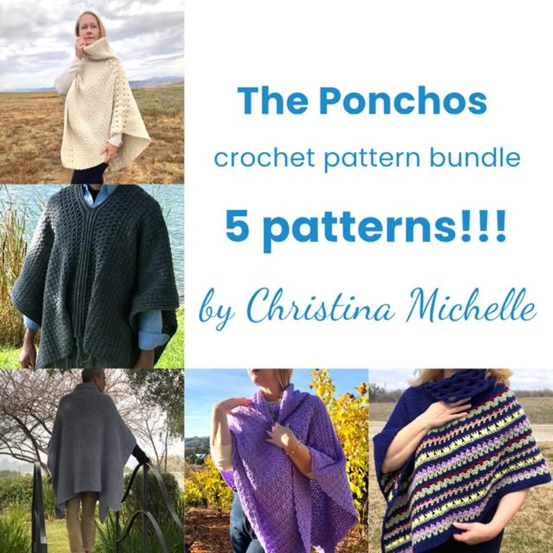 Get all 5 poncho patterns from the ByChristinaMichelle pattern collection in 1 convenient bundle!! These patterns continue to be loved internationally since their first publications and now you get them all for one great value …